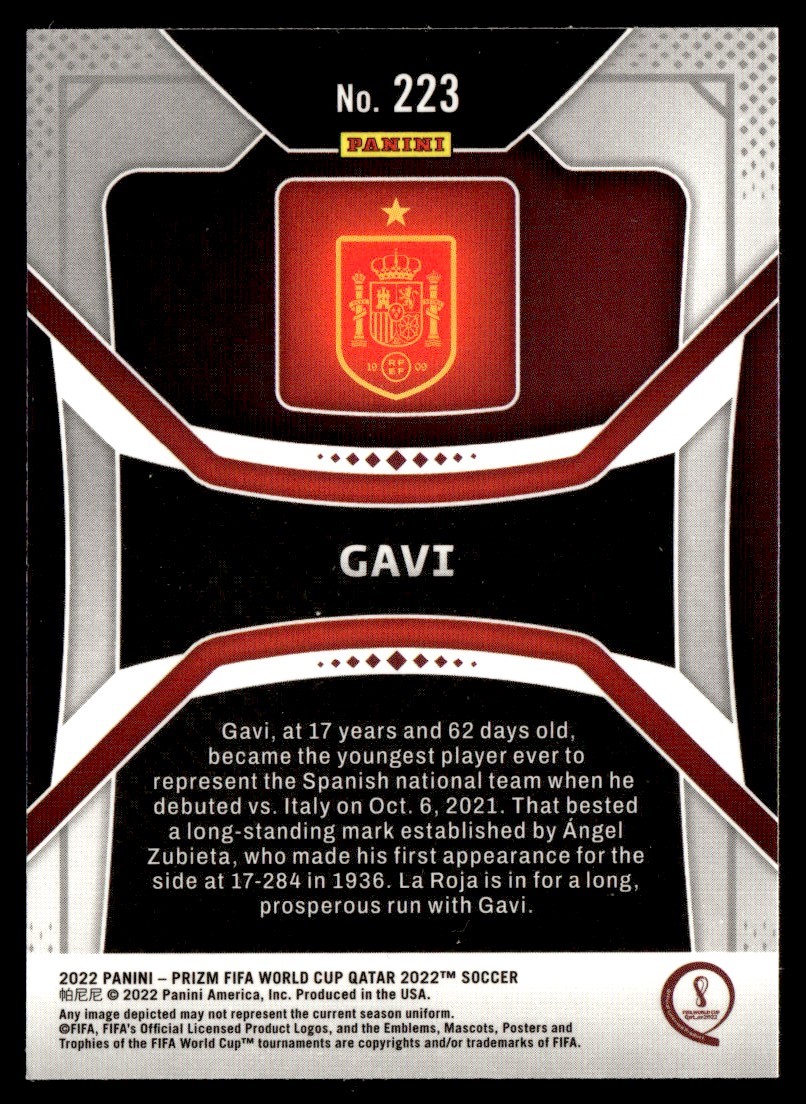 2022 Panini Prizm FIFA World Cup Qatar Gavi Rookie Spain #223