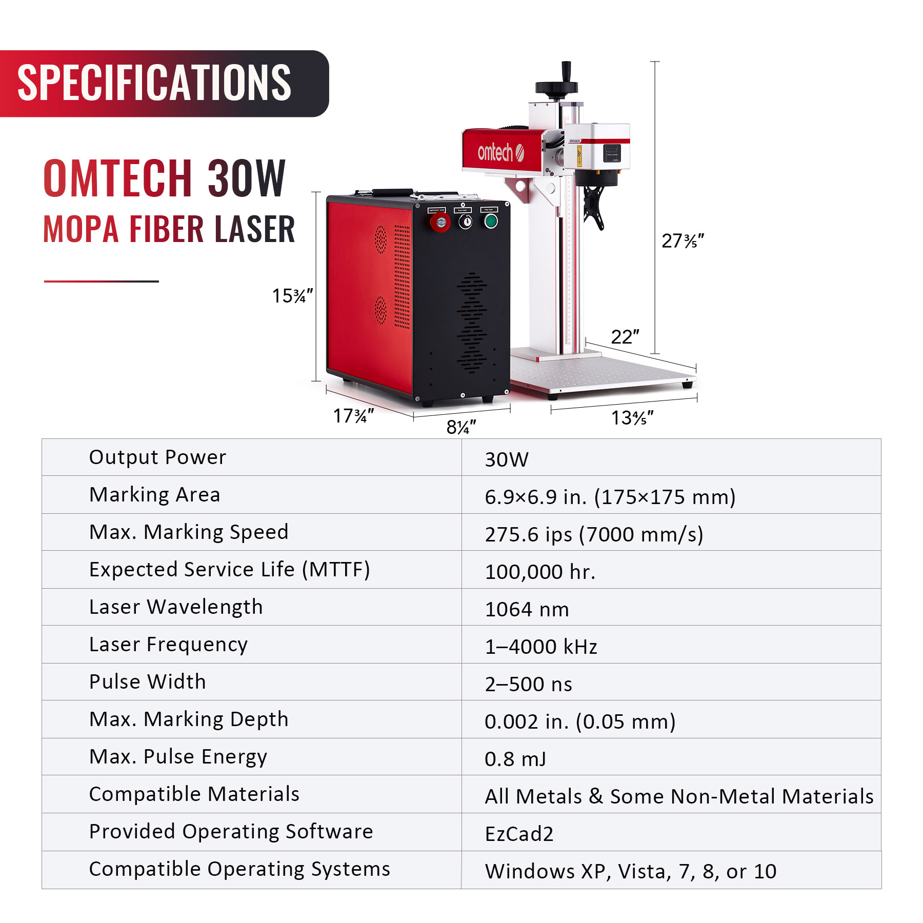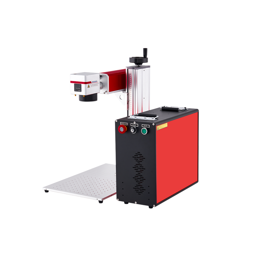 This 30W split fiber laser engraver is your ultimate resource for engraving words, logos, pictures, barcodes, and more on metal (including personalized gold and silver jewelry!) and other materials with a quick turnaround and perfect accuracy. Our device's state-of-the-art JPT MOPA air-cooled fiber laser avoids the tetchiness, fragility, and water-based mess of CO2 laser tubes. Instead, it provides solid-state efficiency, quality, stability, and durability for its entire service life of 100,000 hours. The optical amplifier boosts the beam produced by the master oscillator, with independently adjustable pulse frequency and width to offer incredible versatility applicable to a wide range of materials, ideal for colorful markings on stainless steel and black etchings on anodized aluminum. The Galvo-Tech galvanometric system and compact Fθ field lens ensure quick work with less than 1% distortion from your design. The built-in workspace grid and laser locators make calibrating everything fast and easy. Rotary axes are not included but plug-and-play connection is provided for units with 4-pin connections to mark curved surfaces such as gold and silver rings and bracelets. The desktop laser engraver is operated from the bundled edition of EzCad2, compatible with 32 and 64-bit editions of Windows XP, Vista, 7, 8, and 10. Of course, this fiber marking machine ships with abundant insulation and padding to ensure it arrives at your door like it just came off the factory floor. For all your projects cutting and marking metals, gems, silicon, and more, you can do no better.