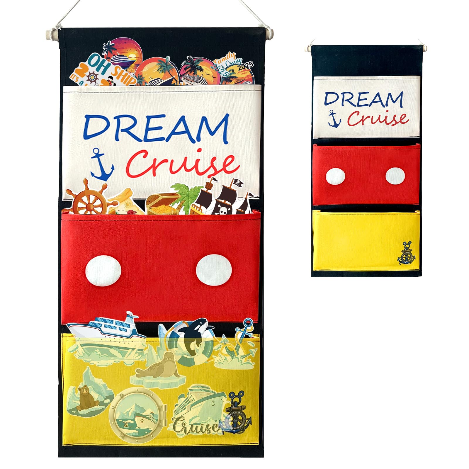 Stay organized and ready for the fun of cruise gift exchanges with this 3-pocket door organizer. Whether you're sailing with friends or family, this handy hanging pouch helps keep your cabin neat and festive. Its water-resistant material and vibrant colors hold up well in ocean environments, while the spacious pockets offer room for small gifts, travel items, or party surprises. Compatible with most cruise lines, this lightweight and foldable storage accessory makes packing simple and your cabin door stand out. An excellent way to join in on door-to-door exchanges or themed activities—no branding or character references needed. Just good vibes and thoughtful surprises at sea!