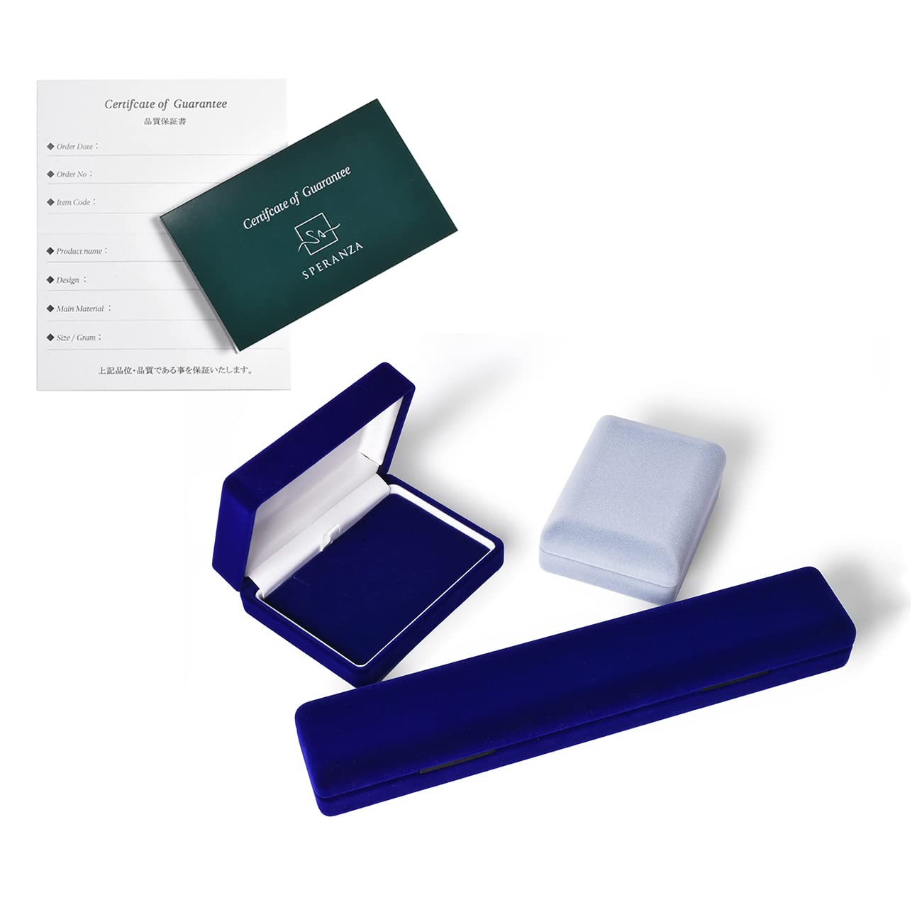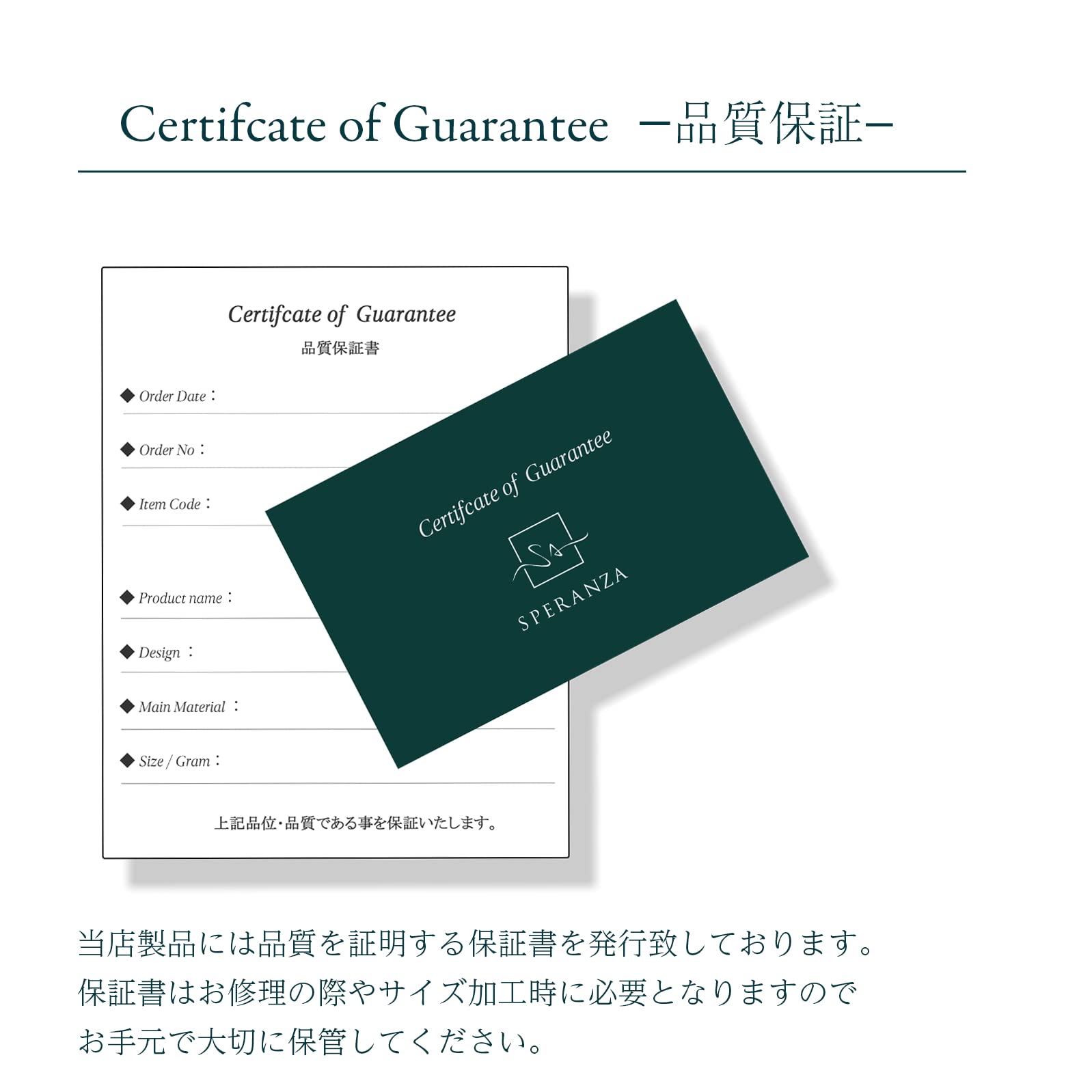 Our quality guarantee card and jewelry case