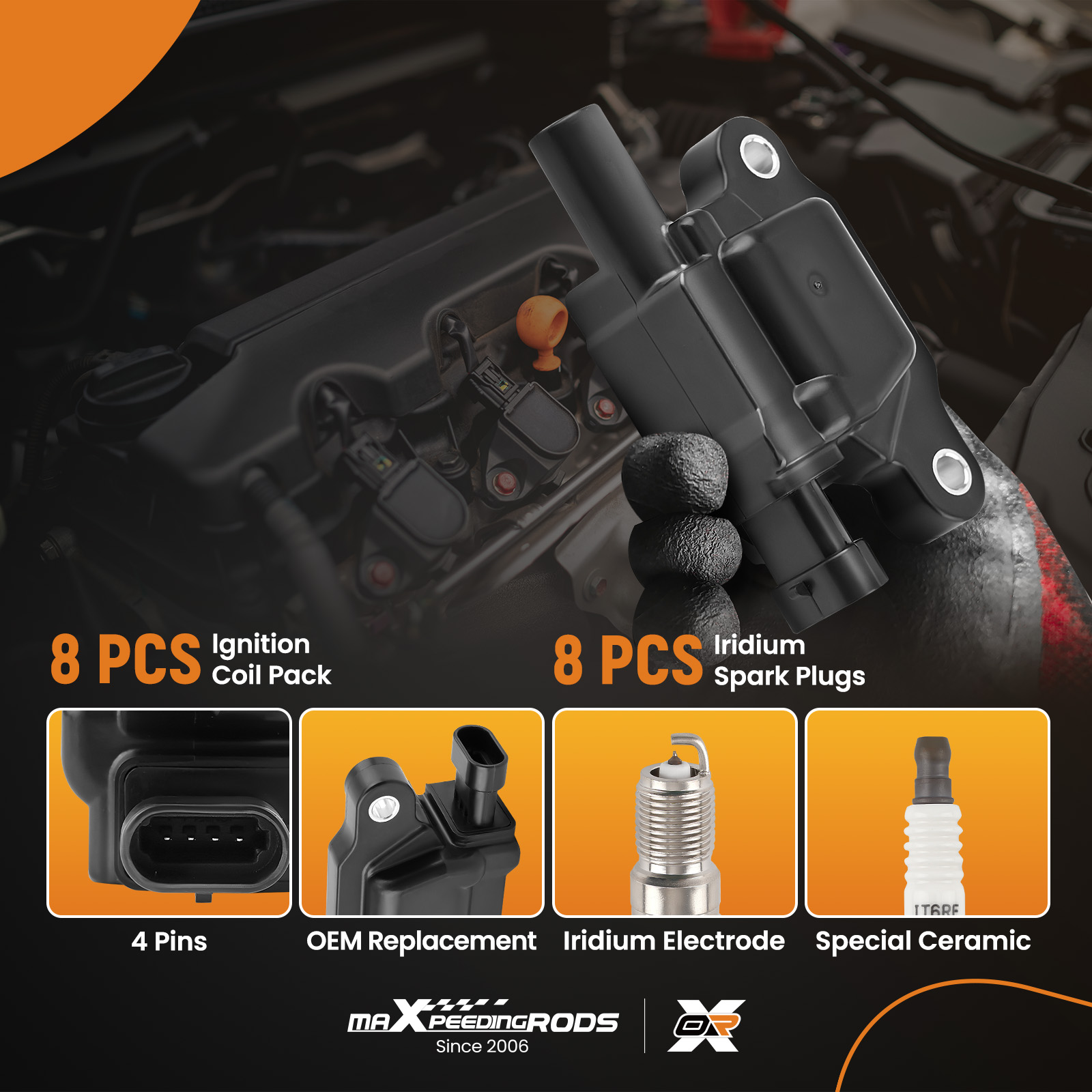 8 PCS Ignition Coils + 8 PCS Iridium Spark Plugs(Showing as the picture)