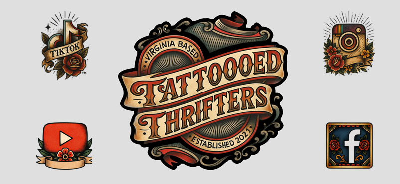 We are Tattooed Thrifters, a Virginia based couple who loves a good find! Whether it be a spontaneous yard sale, a shady back-alley thrift store, or old-school tip-your-hat auction, we are always trying to bring the best products home and pass along to our customers.