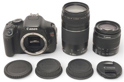 This is a used CANON EOS REBEL T3i 18MP CMOS DSLR CAMERA w/18-55mm LENS + 75-300mm LENS BUNDLE!!! Used, but in good shape!!! Just some normal cosmetic wear on this set!!! The 75-300mm lens has some scratches (pictured), but both lenses have been tested and work perfectly!!! This amazing 18 mega pixel camera features simultaneous JPEG and RAW shooting, Full HD 1080p video recording, continuous shooting up to 3 frames per second, ISO 100 to 6400, Canon's quick Live and Face Detection auto focusing systems, and even compatibility with hundreds of different Canon and 3rd party lenses!!! Speaking of lenses, this beautiful camera also comes with the Canon EF-S 18-55mm f/3.5-5.6 IS II lens and the Canon EF 75-300mm f/4-5.6 II lens!!! With autofocus and image stabilization, you can't go wrong with this one!!! You'll be amazed at the quality of shots this package produces!!! Made by Canon, one of the world's top names in cutting edge digital photography throughout the world!!! You can't go wrong with this one!!! Time to stop snapping pictures at start photographing like the pros!!! PLEASE NOTE: Bundle is being sold with normal cosmetic wear which includes some scratches on the 75-300mm lens (pictured), but nothing too major and nothing that affects performance. Any potential buyer should carefully review all auction photographs to accurately assess the condition prior to placing a bid. Auction is for the Rebel T3i camera, 18-55mm lens, 75-300mm lens, body cap, two rear lens caps, one front lens cap, and Canon camera bag exactly as pictured!!! Nothing else is included. Buyer will need a compatible battery and an SD card on hand to properly use this camera. Don't let this amazing deal on a great camera system pass you by! Any questions, please ask.