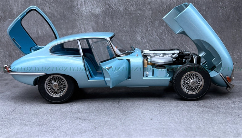 for Kyosho for Jaguar for E-type Coupe silver blue Blue interior 1:18 Car Pre-built Model