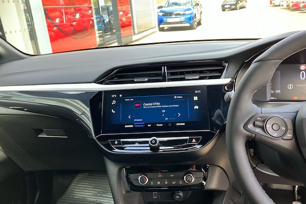 This 2025 Vauxhall Corsa Gs stands out with its striking Premium Graphic Grey finish and distinctive sports styling. Offering a maximum speed of 120 mph and efficient journeys with up to 54.3 mpg combined it’s a practical choice for both city and motorway driving. Inside the car provides generous space for five occupants and flexible boot storage making it ideal for everyday use as well as longer trips. The 1.2 Turbo petrol engine delivers a responsive drive enhanced by features such as 17-inch diamond-cut alloy wheels Intelli-LED headlights dark tinted rear windows and a sleek black roof. Modern conveniences include a central display 10-inch multimedia touchscreen and a rear parking camera with front and rear parking sensors for added confidence. This vehicle is ULEZ compliant offering you peace of mind in low emission zones while maintaining strong on-road presence and comfort.