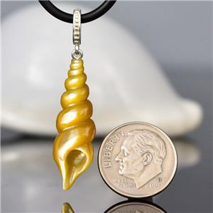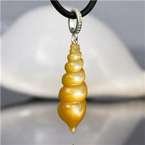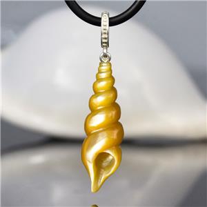 GOLDEN MOTHER-of-PEARL SEASHELL DESIGN CARVING & 925 STERLING SILVER