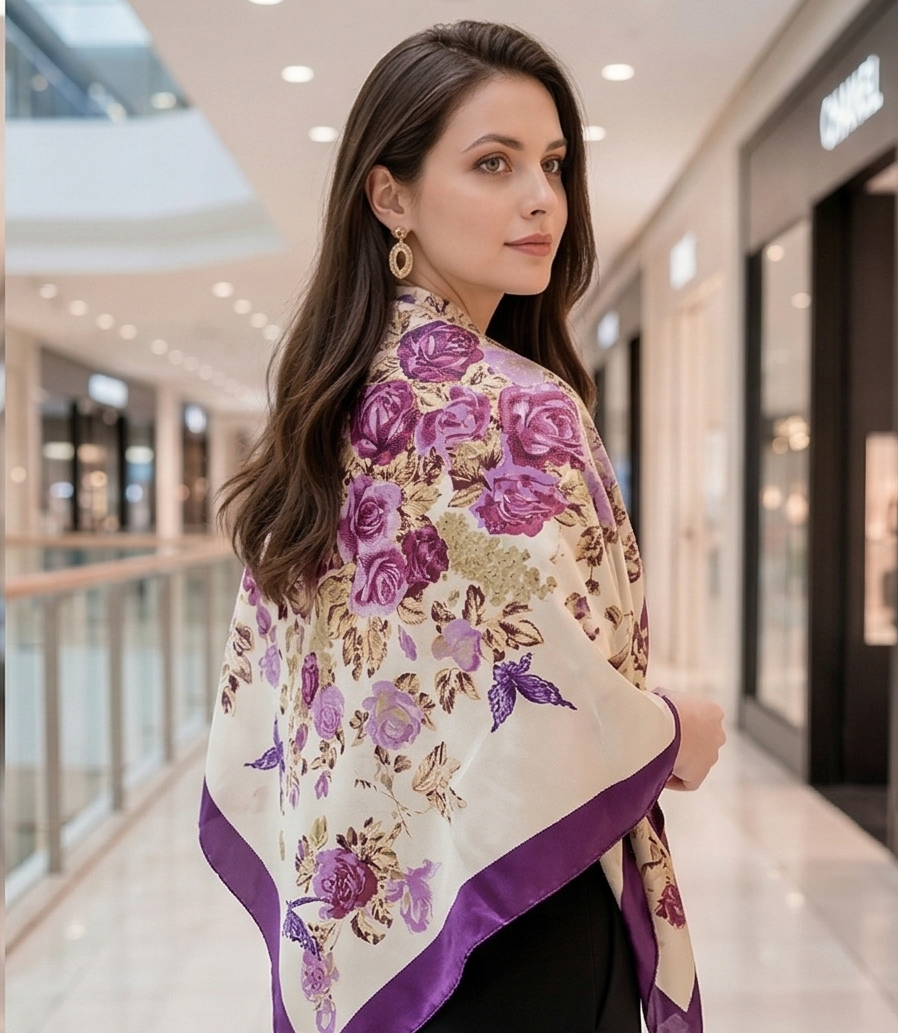 Damen Satin Seidentuch 90x90 – Elegant & Klassisch – Veredelt mit Seide