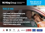 From our manufacturer approved Used Car Programmes to our Trade Centre, WJ King provides the same commitment to customer care and a comprehensive warranty is supplied for all our vehicles. Our aim is to provide the best possible service to our customers in every area of our business