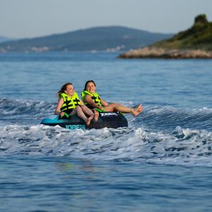 The 1-person Rumble brought so much fun that we thought — why not make a version for two? The brand-new Rumble Funtube 2P doubles the excitement, letting you and a friend share the thrill of a wild water ride together. Built with a tough 24G PVC inner and durable 420D nylon cover, it's strong, lightweight, and made to last. The four soft neoprene-knuckle handles ensure a comfortable grip, whether you're sitting or lying down. Get ready for twice the laughs, twice the speed, and twice the fun.