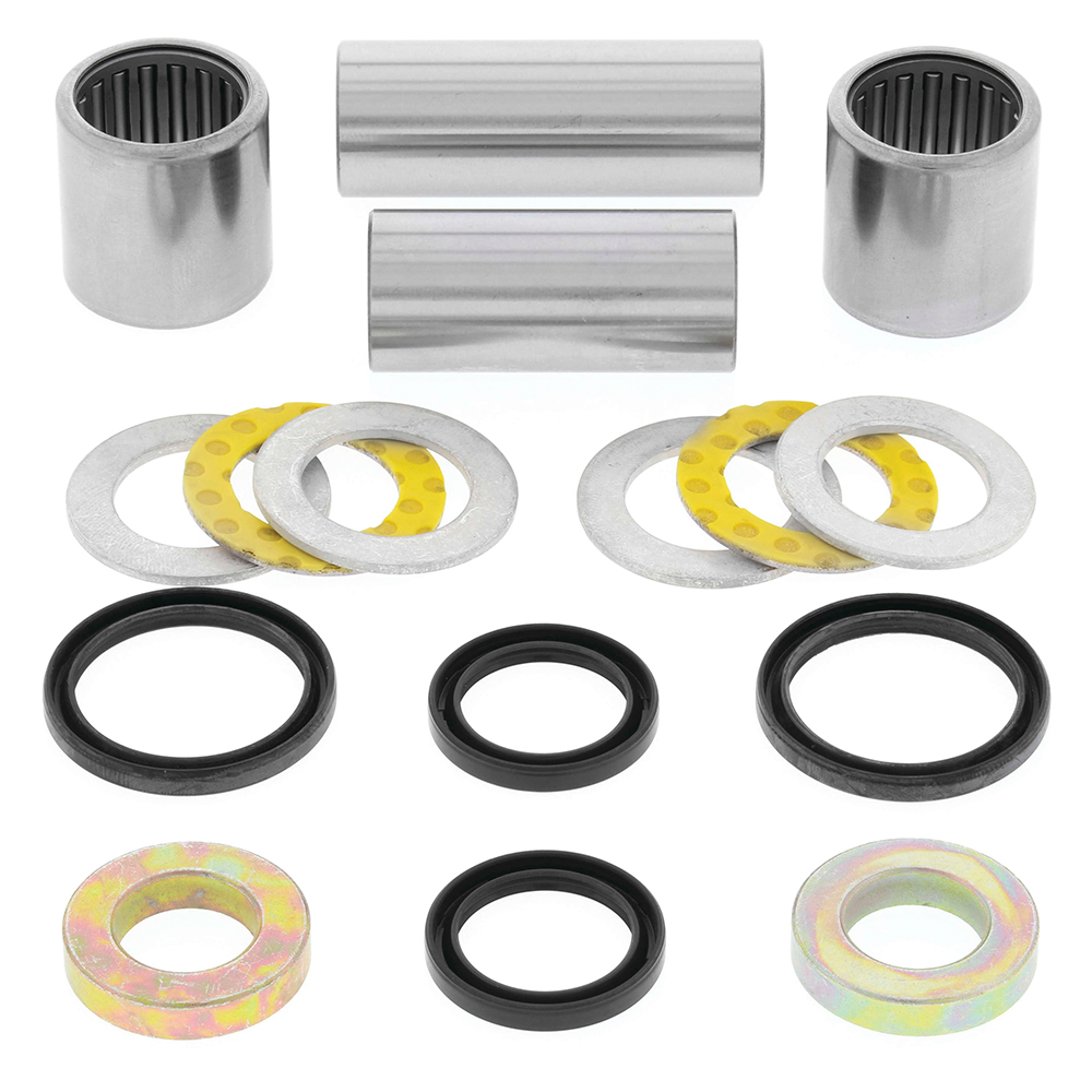 All Balls Swing Arm Bearing Kits include all of the bearings, seals, bushings, thrust bearings (if required) needed to do the job correctly and completely.