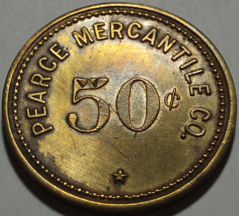 Obverse: PEARCE MERCANTILE CO. • 50¢ • Star.