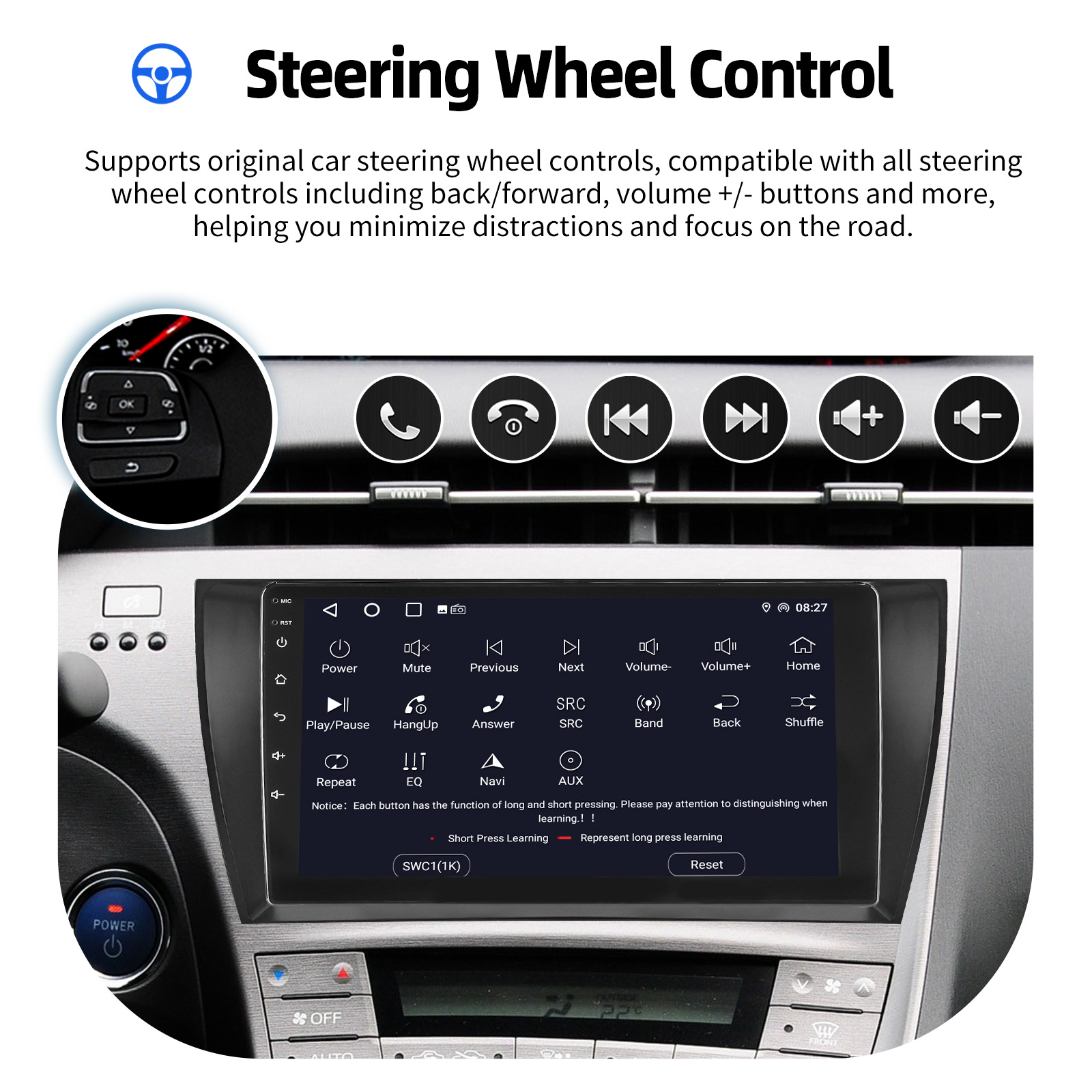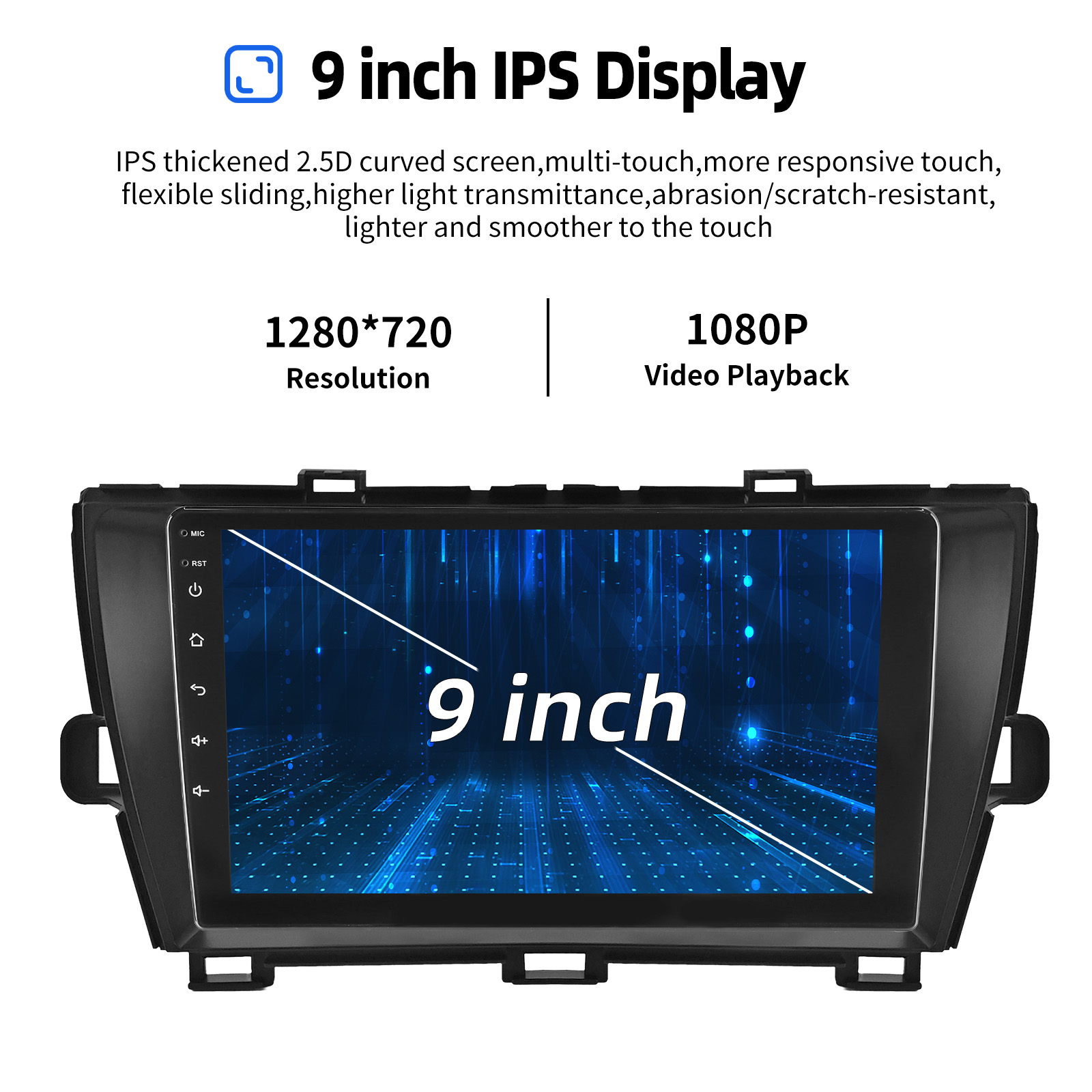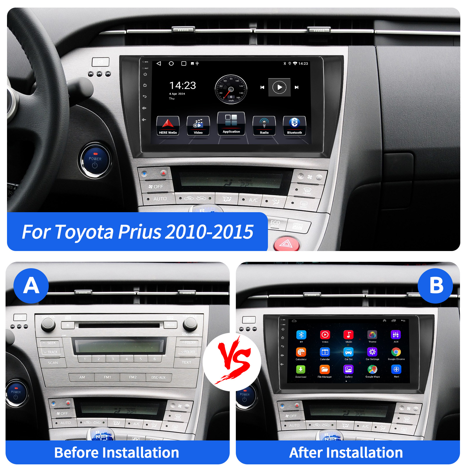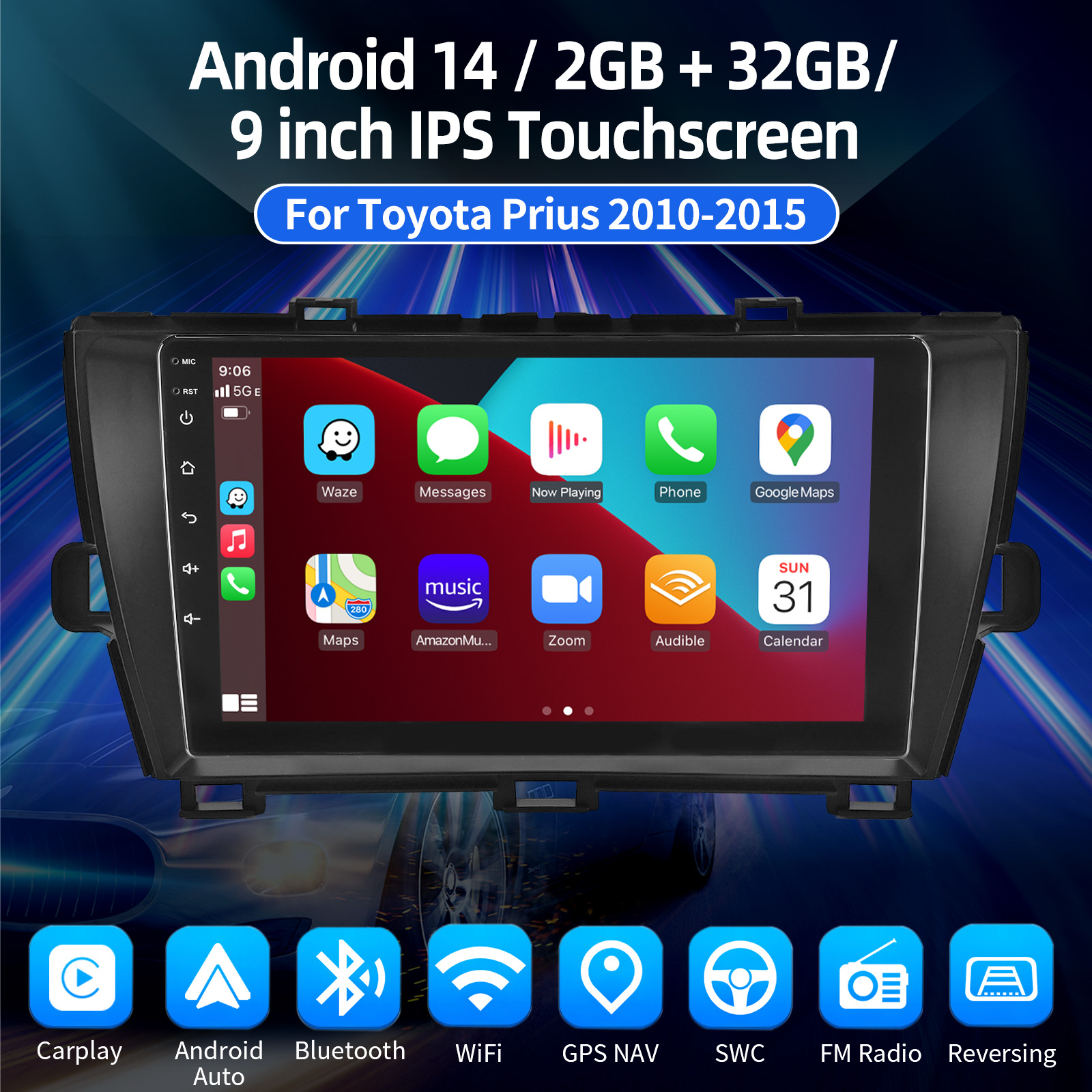 ▲9 Inch Android 14 Car Radio For Toyota Prius 2010-2015: The Android car radio with 9" 1280* 720 HD capacitive touchscreen, 2GB RAM and 32GB ROM allows you to download your favorite apps and videos, so driving is no longer boring. No extra frame, no cable change, plug and play. It comes with Canbus and supports most original functions: Steering wheel control, reverse signals and reading original computer data, etc.