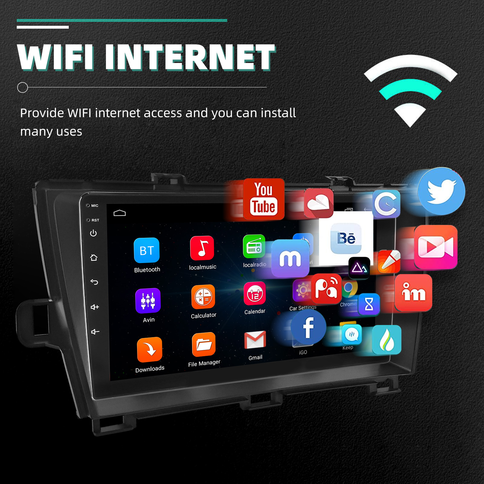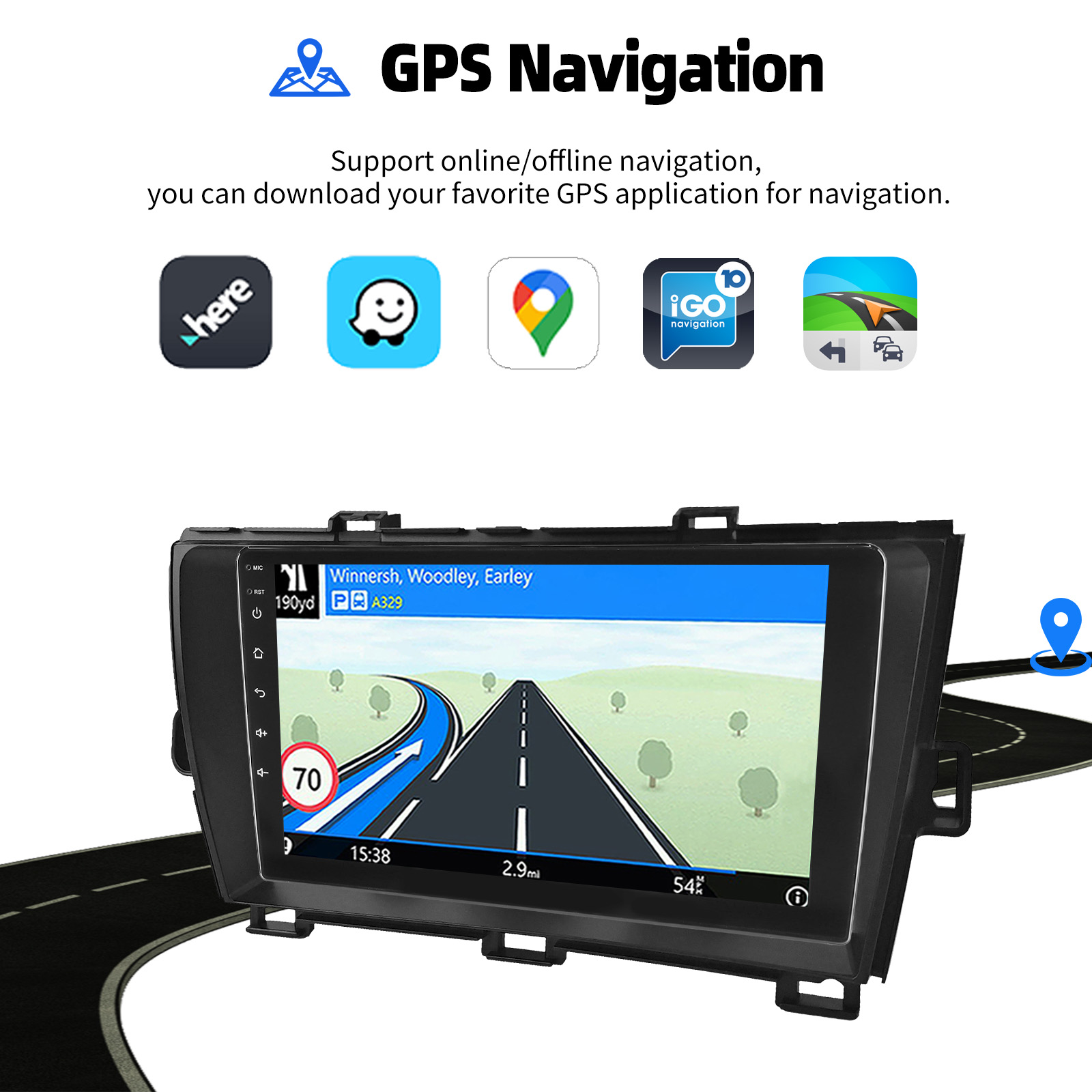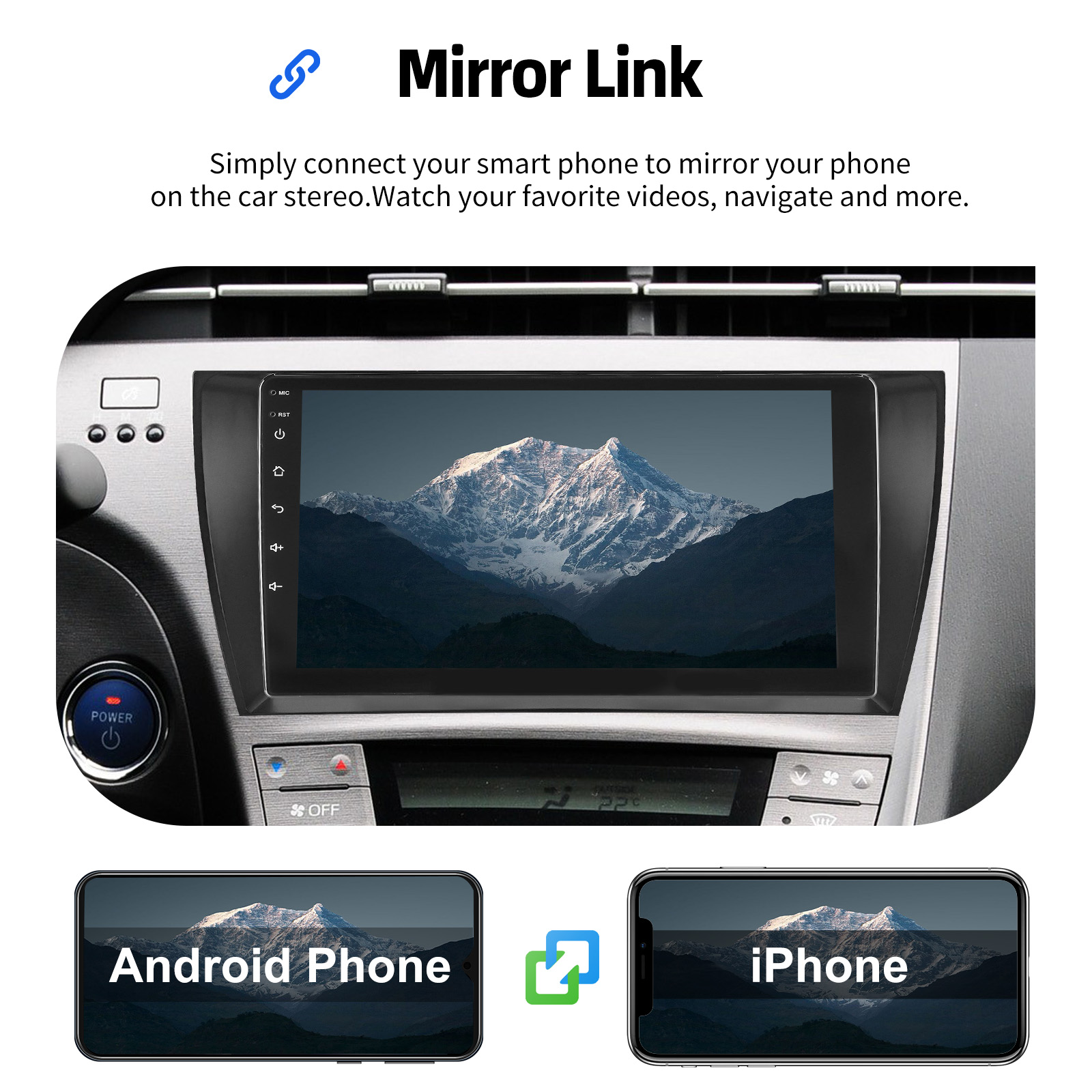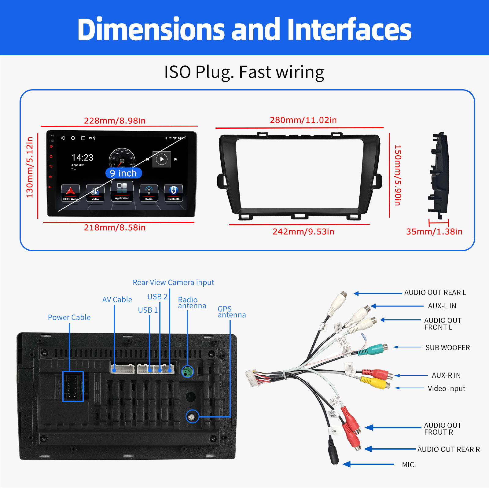 ▲9 Inch Android 14 Car Radio For Toyota Prius 2010-2015: The Android car radio with 9" 1280* 720 HD capacitive touchscreen, 2GB RAM and 32GB ROM allows you to download your favorite apps and videos, so driving is no longer boring. No extra frame, no cable change, plug and play. It comes with Canbus and supports most original functions: Steering wheel control, reverse signals and reading original computer data, etc.