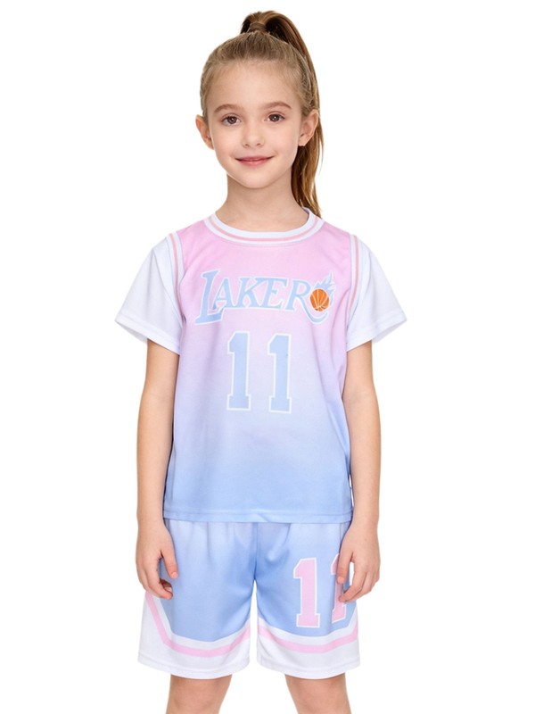 Kids Girls Sports Set Athletic Activewear Shorts Outfit Travel Gradient Color