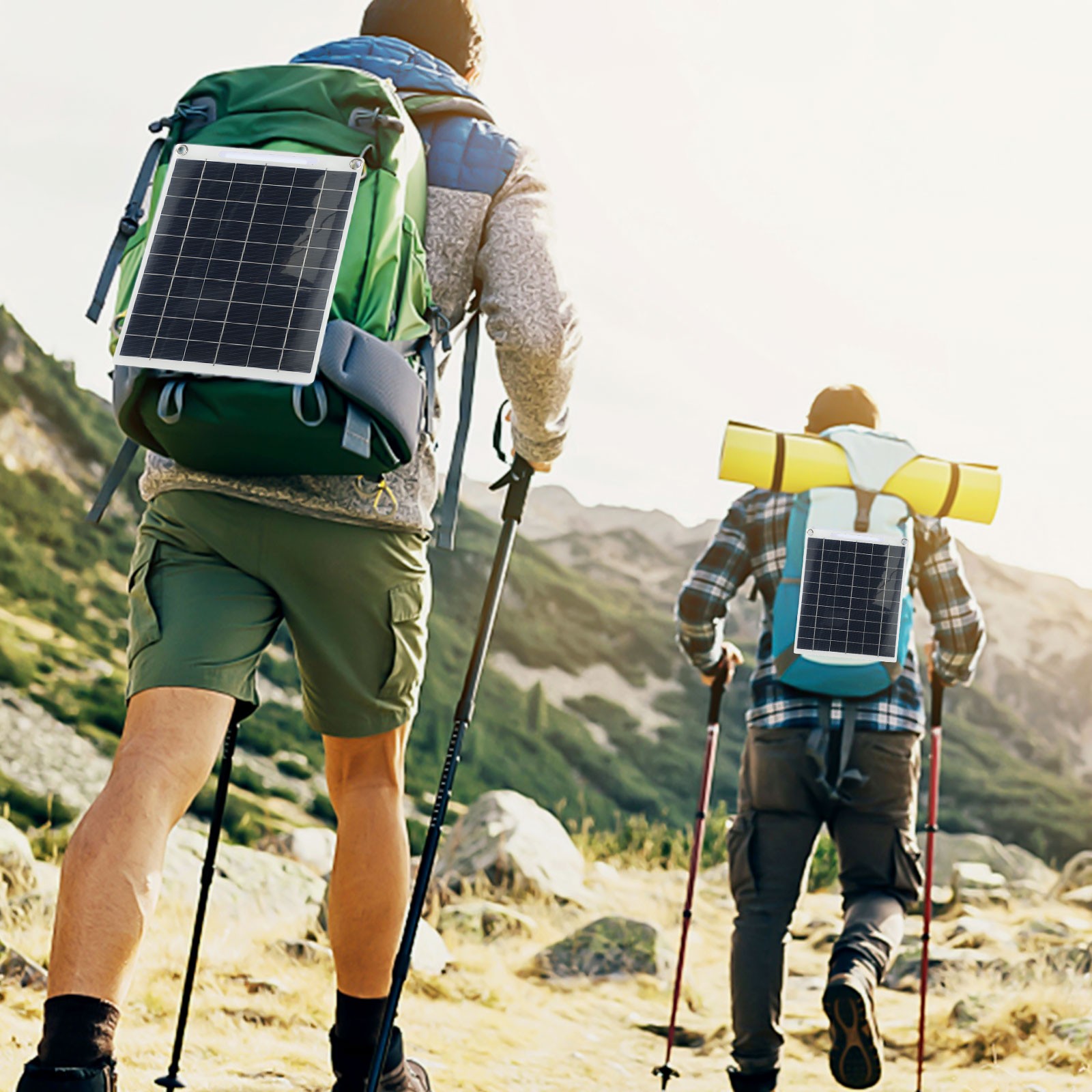 *Easy attachment with 2 carabiners: It comes with 2 carabiners, allowing you to easily attach the charger to your backpack or other objects through the 4 eyelets provided.