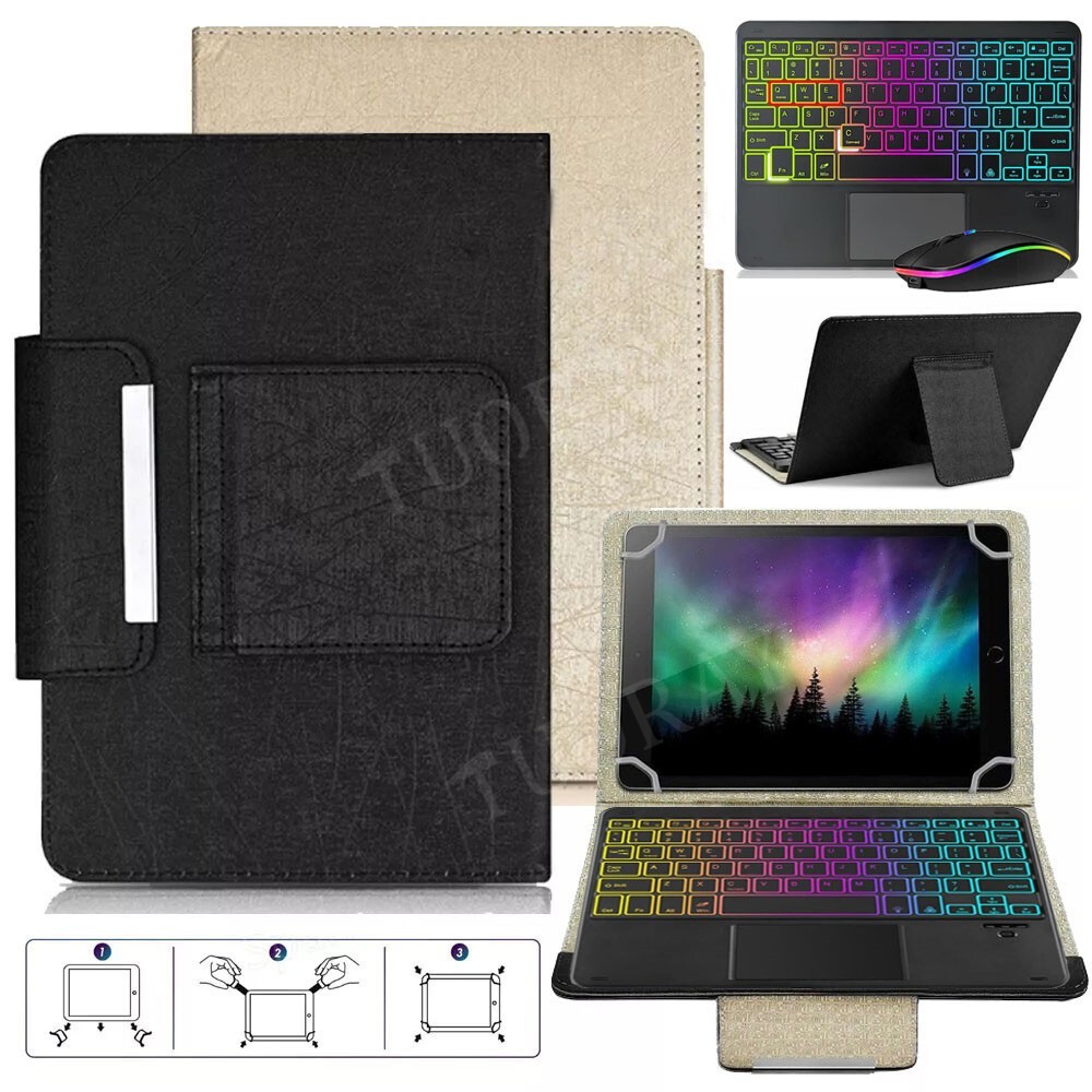 danke 3,Die Tastatur hat zwei Optionen: bunte Hintergrundbeleuchtung und RGB Hintergrundbeleuchtung 4,Diese Tastaturbelegung ist QWERTZ 9.7"~11" Zoll Kompatible Größe:200mm < Länge < 270mm und 140mm < Breite < 180mm und Dicke<10mm Der Fall ist kompakt und leicht, wenn geschlossen, so