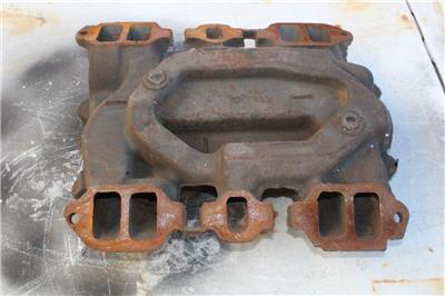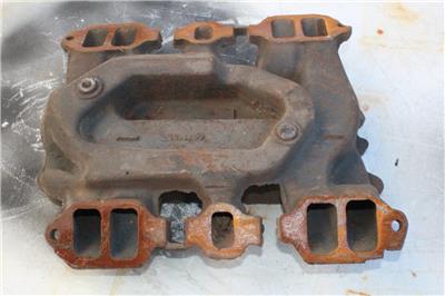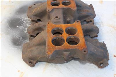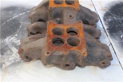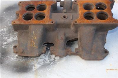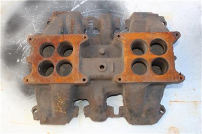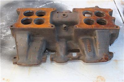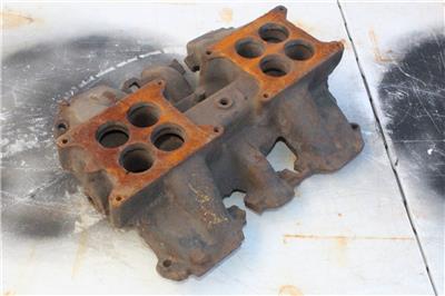 Up for sale is a vintage 1957 Cadillac dual quad intake. Number on the intake is 1465950. Intake looks pretty solid. Hasn't been ported or cut on. The only minor issue is in the middle of the intake where it mounts to the engine. It looks like on both sides, one mount area has a piece that has been broke. I don't think it would affect how it bolts down, but you be the judge. Great piece for your restoration.