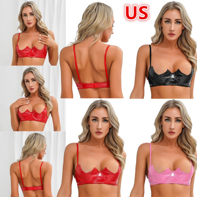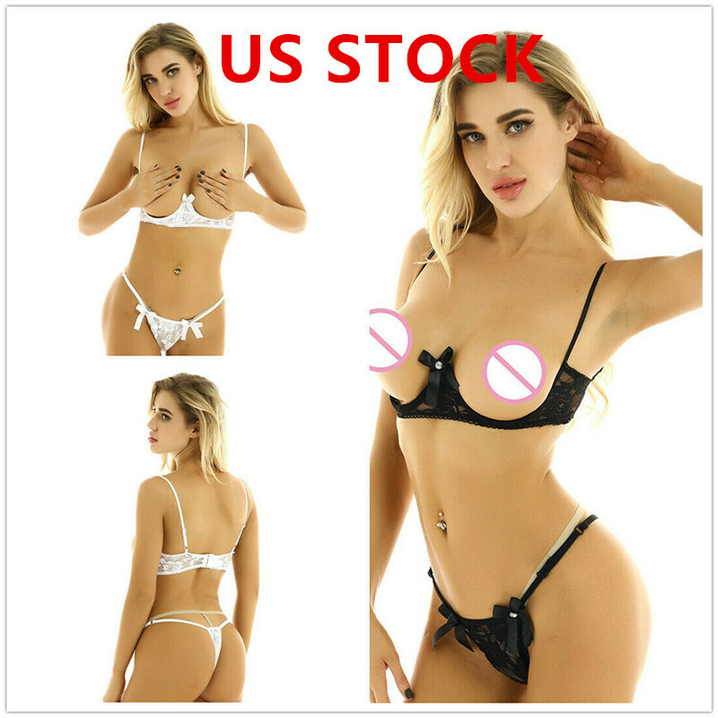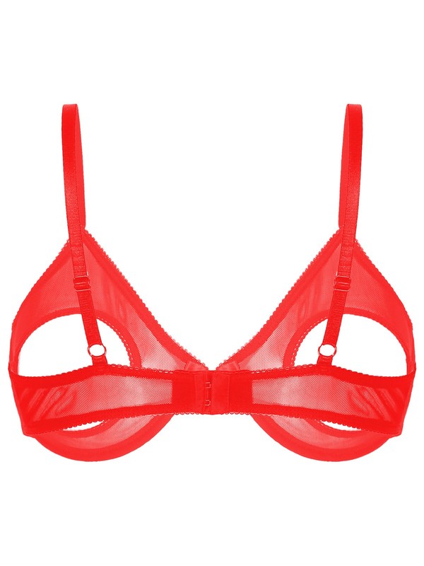 Womens Open Cups Underwired Bra Tops Adjustable Straps Sheer Mesh Brassiere Underwear.