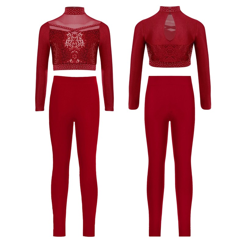The mock neck long-sleeve crop top design is trendy and stylish, adding a modern touch to the traditional dance costume.