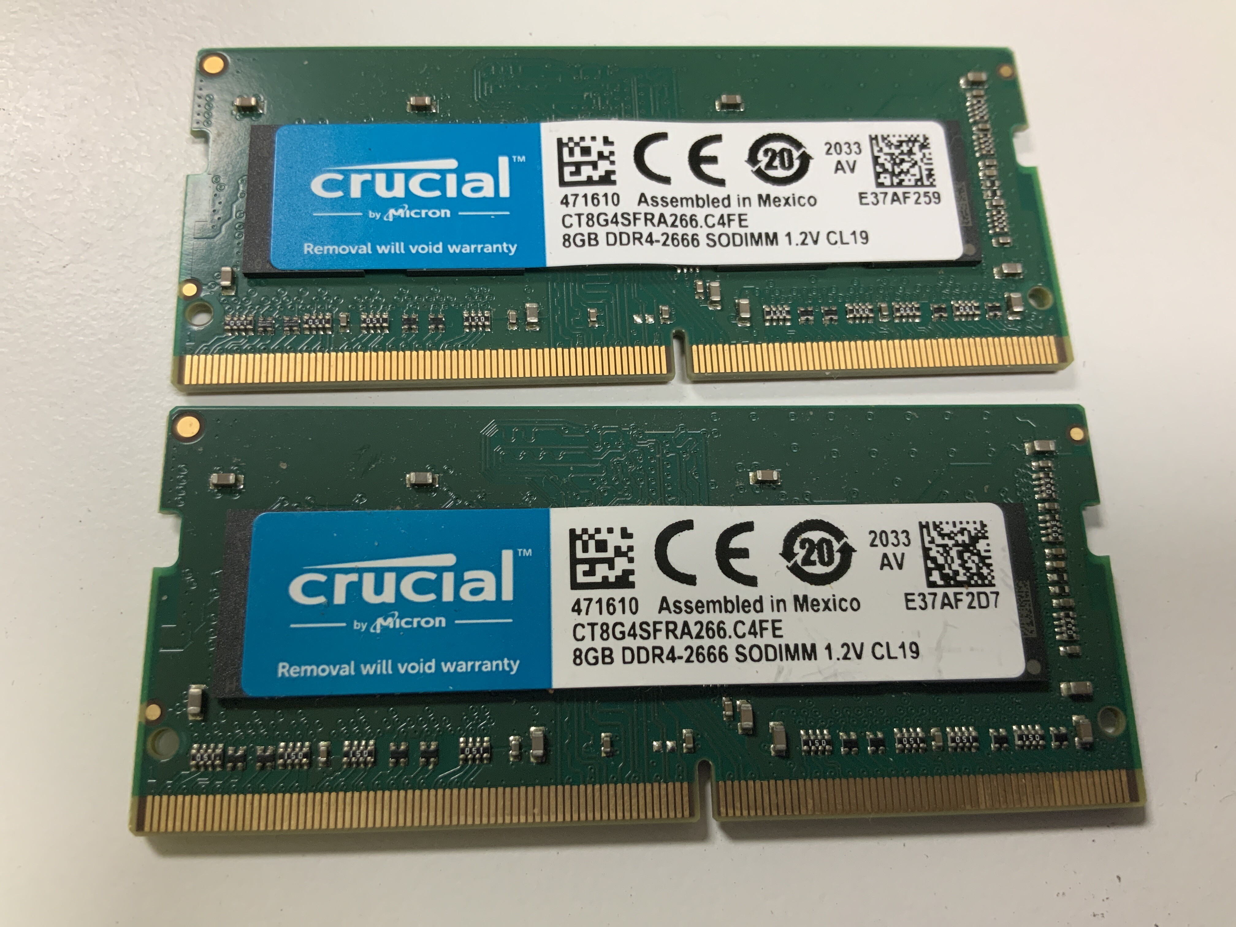 This listing is for a lot of 2 Crucial 8GB DDR4-2666 SODIMM laptop memory modules, model CT8G4SFRA266. These modules offer reliable, high-speed performance for compatible laptops, ensuring smoother multitasking and enhanced system responsiveness. Perfect for upgrading or expanding your laptop's memory without breaking the bank.
