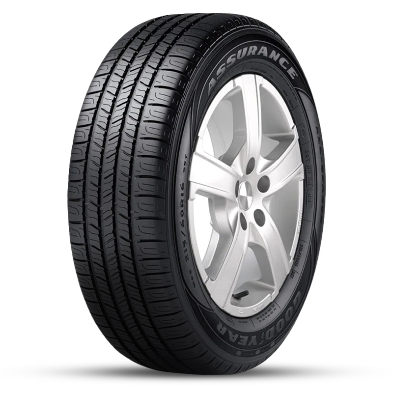 The Goodyear Assurance All-Season is a touring, all season tire manufactured for passenger vehicles and SUVs. The tire provides first-rate all-weather traction as the multiple biting edges is the symmetric tread design to improve the dry, wet and even winter weather traction. Goodyear offers a 65,000 miles treadwear warranty with this model. The Assurance All-Season offers a comfortable and quiet driving experience. The optimized variable pitch tread design reduces the road and pattern noise generated when the tires are in motion by creating a frequency that cancels them out. The internal polyester cord body and the twin steel belt reinforcements follow the road surface closely and lower the road vibrations felt in the cabin of the vehicle.