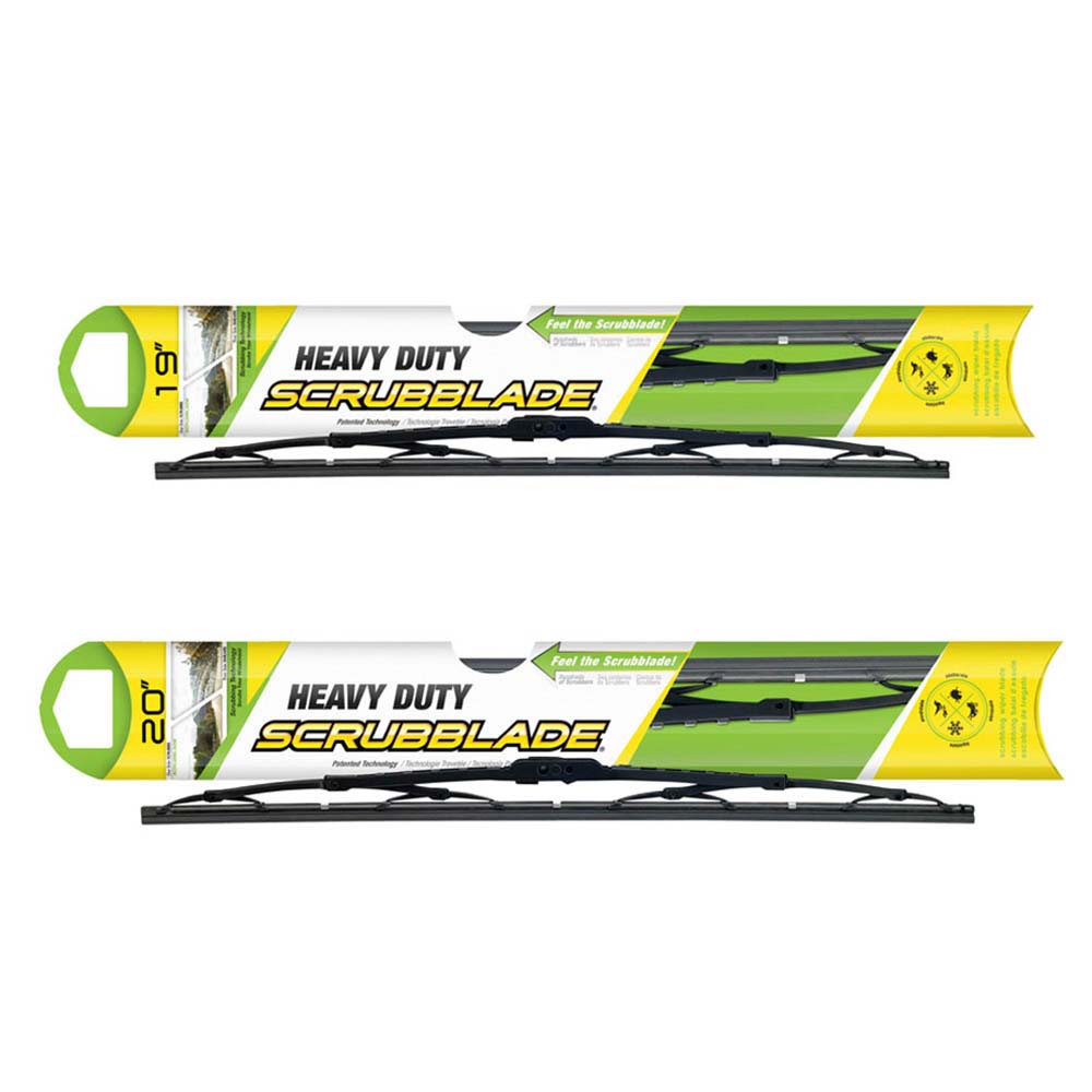 The Heavy Duty SCRUBBLADE is superior to even the finest conventional wiper blades. It boasts a sturdy steel frame and graphite coated blades for a quiet, smooth wipe. Featuring our scrubbing design to deliver a clean wipe like no other blade on the market. Included in the package is a standard adapter for fast and easy installation covering about 80% of all vehicles.