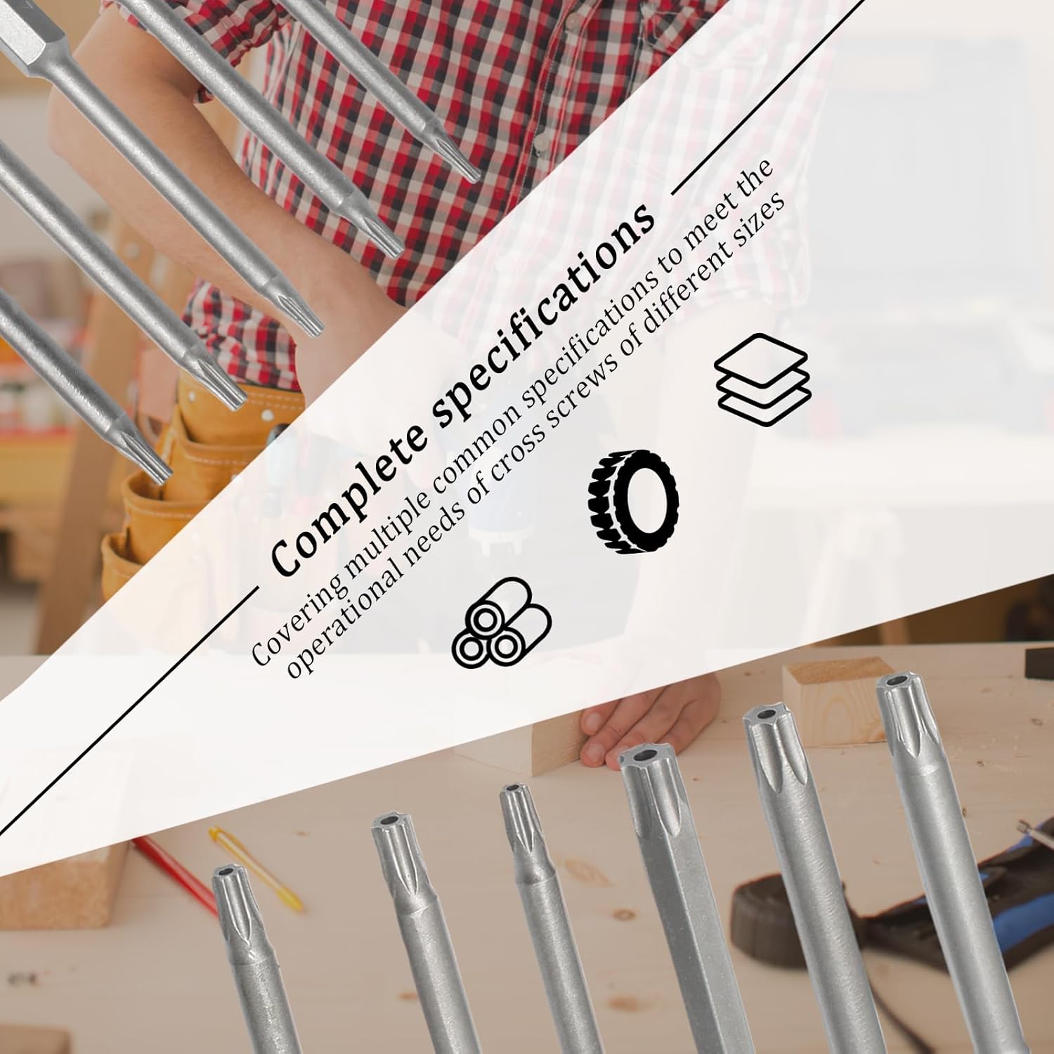 An essential tool for DIY enthusiasts and mechanics: A set of 11 security star bits set for home repairs, auto repairs, woodworking, repairing electronic products and other screw driving applications.Suitable for electric screwdrivers, hand screwdrivers, electric drills, air drills and other tools.