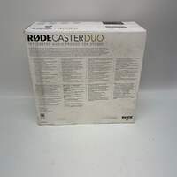 New Rode RODECaster Duo Integrated Audio Production Studio Podcast Mixer Items included in this sale: New Rode Caster Duo New Rode Caster Duo RCDUO RCDUO *All originally boxed contents are included. Specifications: Collection General/Other Brand Rode Model Caster Duo MPN RCDUO Type Duo Compact Integrated Audio Production Studio Condition New MFG Warranty? No UPC 698813010646 Serial# NO VISIBLE SERIAL Cosmetic condition: This device is brand new, sealed, and in the manufacturer’s original packaging. Please view our close up photos, as these are taken of the actual item being offered for sale. Functionality condition: This device is brand new and factory-sealed in the manufacturer’s original packaging, and it should perform according to the manufacturer’s specifications.
