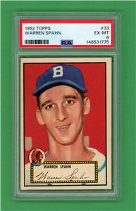 1952 Topps Low Number card #33 of Warren Spahn.