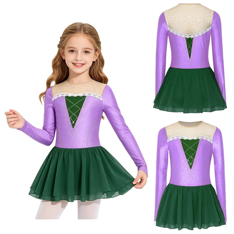 Girls Dress Mesh Patchwork Skirt Party Costume Figure Ice Skating Festival Show