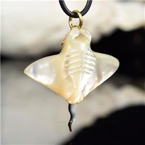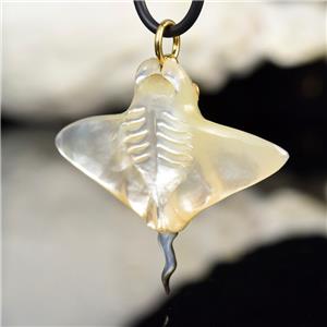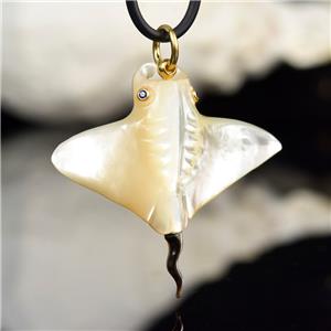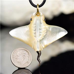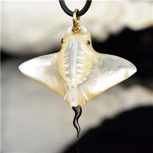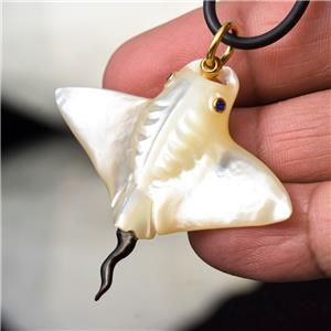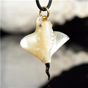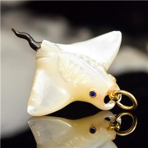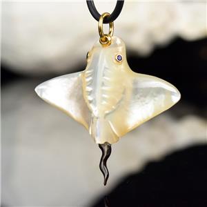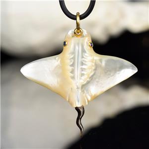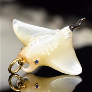 MOTHER-of-PEARL MANTA RAY with BLUE SAPPHIRE EYES & 18K GOLD VERMEIL over STERLING SILVER