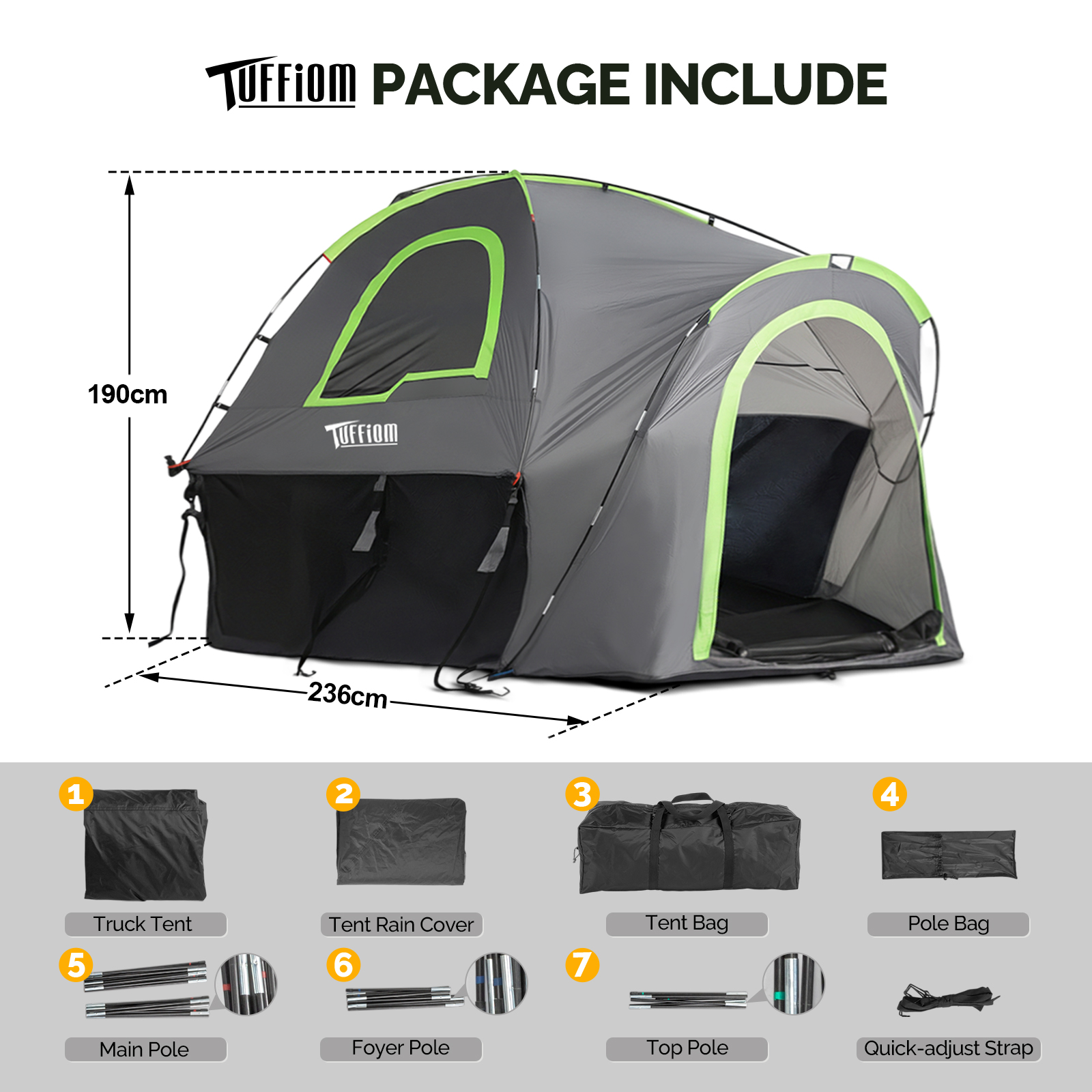 【Package】: Package included: 1 x tent, 1 x carry bag, 4 x fiberglass pole, 1 x user guide. With 2 mesh bags in the convenient inner space, easy to collect sundries to keep the inner space tidy. truck tent will provide a 1-year quality and technical support. Any questions, please do not hesitate to us