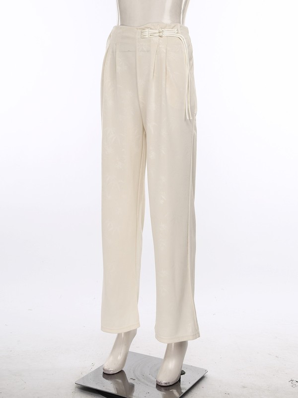 The elastic waistband with Chinese buttons decor not only provides a comfortable fit but also serves as a stylish detail, combining traditional and modern elements.