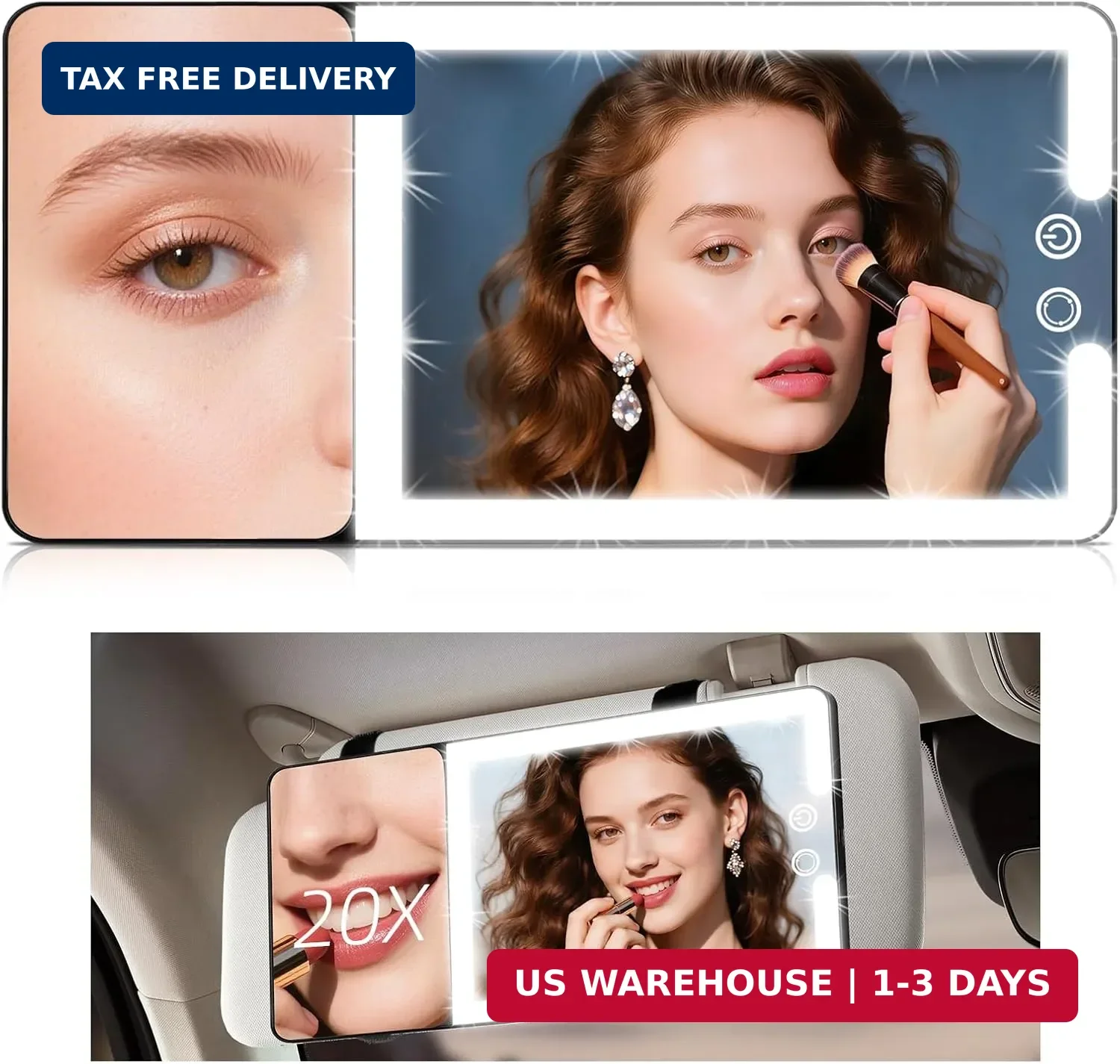 • 【Upgraded with 20X Magnification】— Unlike ordinary lighted car mirrors, our car vanity mirror features an 20X magnifying section—perfect for women's precise makeup (eyeliner, brows, lips) and men's grooming (beard trimming, eyebrow shaping). A must car accessories for women & men.