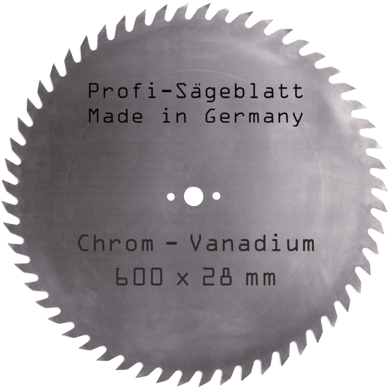 • Made in Germany • 56 Stück Zähne • KV-A Grobzahn Wolfzahn • Maximale zulässige Drehzahl 3.100 U./Min. • Aussendurchmesser: 600 mmØ • Bohrung: 30 mmØ • Blattstärke: 2,8 mm