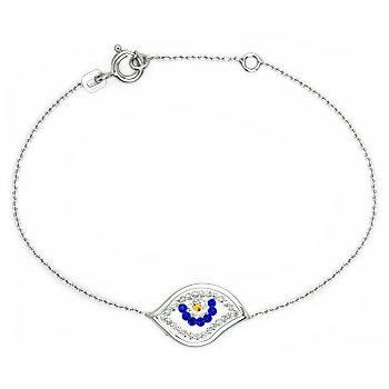 Evil Eye Cubic Zirconia CZ Crystal Bracelet in .925 Sterling Silver