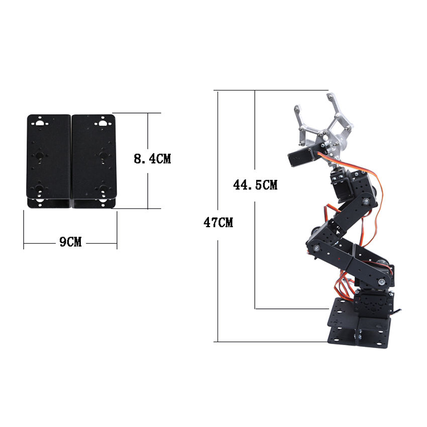 1 Set 6 DOF Aluminium Mechanical Robotic Arm Clamp Claw Mount Robot Kit Black