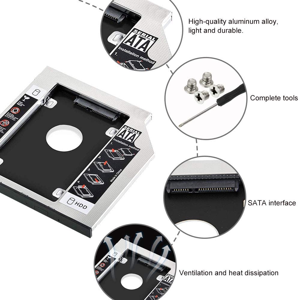 Durable aluminum alloy: This hard disk drive adapter uses high-quality aluminum alloy, features anti-rust, anti-corrosion, light weight, durable and long service life.It is suitable for 9.5mm drives with SATA interface in notebook computers.