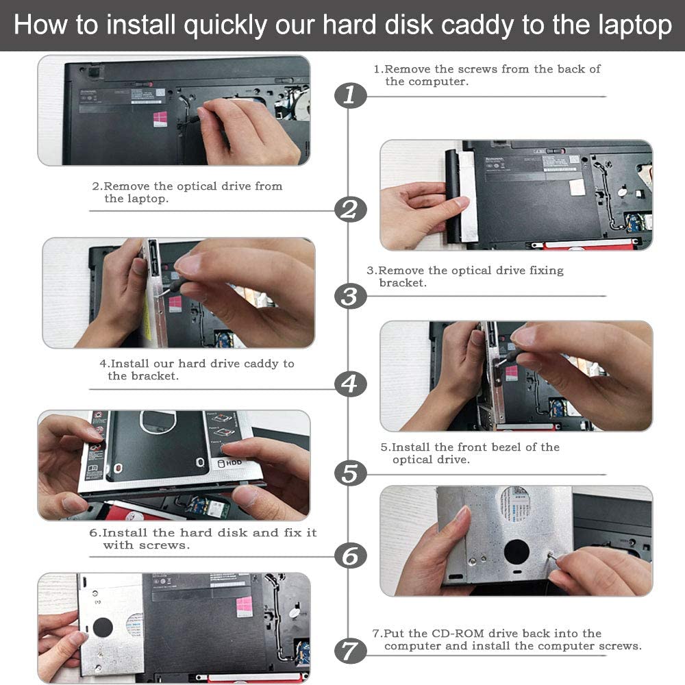 Trouble-free installation: There comes with 1 screwdriver and 4 screws for DIY installing, and the detailed installation steps are on the on the surface of the second HDD/SSD, just follow it to replace the optical drive to quickly upgrade the computer.