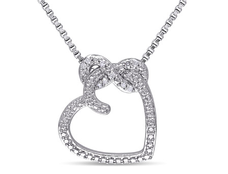 The perfect choice for a night out, this beautiful Amour Collection Diamond Infinity Heart Pendant will make a dazzling statement. Crafted in sterling silver, this pendant features 10 round-cut, prong-set diamond accents (G-H, I2-I3). This pendant is fixed on an 18-inch long box chain and is secured with a lobster clasp.