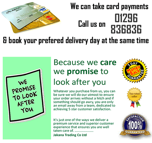 Jakana Trading Co Ltd opened its doors for business early in 2002 and has grown rapidly to become a successful online retailer of items for your home, garden, workshop and leisure. CONTACT US: Tel 01296 836836 available Mon - Fri 9.30 - 5.00 excluding Bank Holidays OFFICE ADDRESS: THE WAREHOUSE (Behind Stratstone), BUCKINGHAM ROAD, AYLESBURY BUCKS HP19 9QQ. Viewings / Collections by appointment, please call to arrange. Most of the products we sell are in stock in our warehouse in Buckinghamshire and are available for immediate shipment direct to you. Our regular courier collections ensure that they are in your hands in the fastest possible time. We believe very strongly that we should treat every customer in just the same way that we would like to be treated and so this is what we always aim to do. As this is our full time business we are in a strong position to always be here if you need questions answering or if you need customer service. Our office is manned 5 days a week and emails are checked periodically over the weekends. Jakana Trading is a genuine UK based VAT registered business offering quality items at prices far cheaper than the high street. Every item is carefully packaged and labeled using the latest technology to ensure safe shipment to you. All prices quoted include VAT where applicable. Jakana Trading complies with all appropriate UK consumer protection legislation including the Sale of Goods Act, the Distance Selling Regulations and the Trade Descriptions Act.