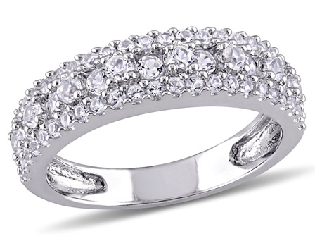 Dazzle everyone with this Amour Collection Created White Sapphire Cluster Anniversary Ring. Crafted in lustrous sterling silver and features 17 round-cut bezel-set and prong-set created white sapphire gemstones (2 x 2mm) studded in a triple row vintage eternity pattern for giving bold and beautiful look. Further 46 round-cut, buttercup-set created white sapphire gemstones embellished on the edges of the band. Buffed with luster, this glamorous anniversary ring is the perfect for a woman who seeks simplicity and elegance. Flaunt your style with this sophisticated cluster anniversary ring.