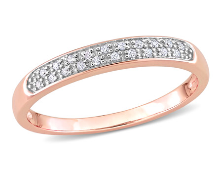 This Amour Collection Diamond Wedding Band will complement any engagement ring with its icy shimmer. Crafted in lustrous pink gold, the wedding ring sparkles with two rows of twenty round diamonds (G-H, I2-I3) pave-set on a slender, high-polish band.