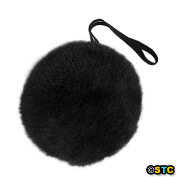 SeasonsTrading black plush bunny tail measures 3.75" in diameter.  Black elastic band attached for easy wear.  Tail's elastic band can be tied to a loop (e.g., belt loop) or attach to a belt.  One size fits all.  Cute accessory for bunny rabbit, bear, or other animal costumes!  This item is available in other colors (sold separately).  Please click here for details.