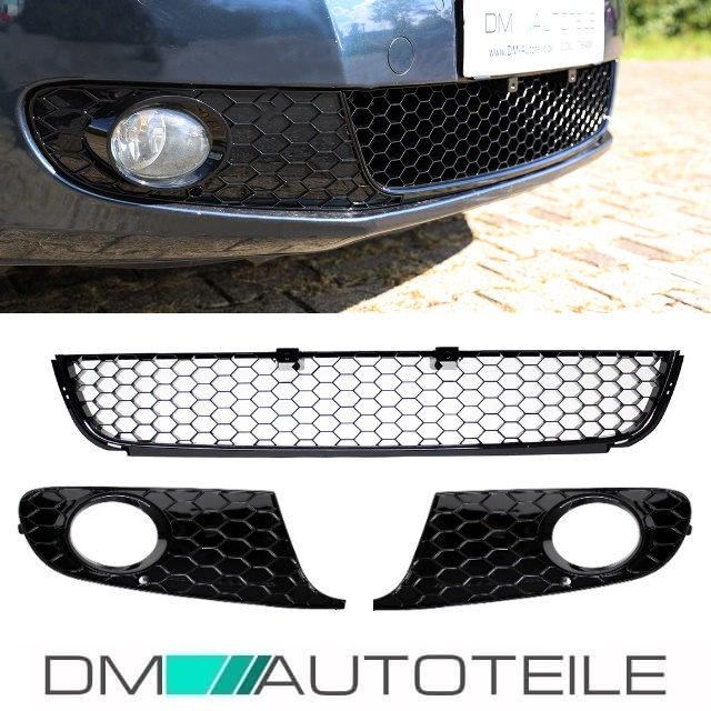 Gitter SET Stoßstange Wabendesign Glanz Schwarz nur Serie passt für VW Golf 6 VI