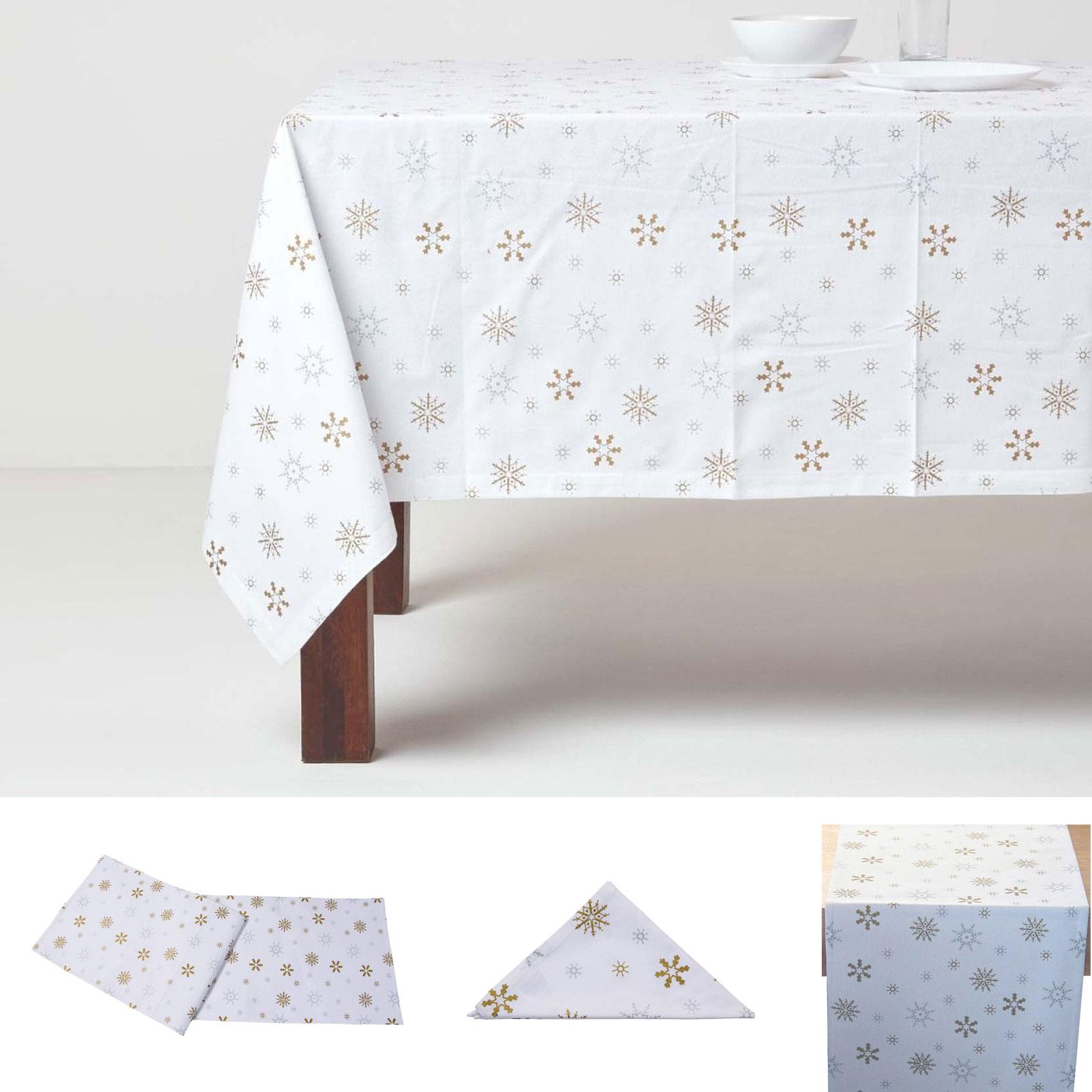 This beautiful Christmas Gold Snowflake Cotton Tablecloth has a classic design that is sure to suit everyone’s needs when it comes to table decorations during the Christmas season. This range of Christmas tablecloths features timeless designs which will bring out the Christmas-lover inside everyone at your table. Ideal for Christmas dinner or a Boxing Day buffet, these tablecloths will provide character to your dining area whilst protecting the table spillages, from hot plates and cutlery. These table cloths are made from 100% cotton and are long lasting; you won’t have to invest in a new Christmas tablecloth for years and years to come! They are also washable at 40°C, so you can remove even the toughest stains.