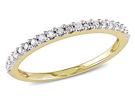 Represent your life-long commitment with this enchanting Amour Collection Diamond Stackable Semi-Eternity Band. Mounted in glittering yellow gold it features 18 round-cut, prong-set flickering diamonds (G-H, I2-I3) augmented on its band. Enhanced with a high polish finish, this eye-catching and breathtaking diamond eternity band is the perfect choice for a bride-to-be. Pair this band with any other cocktail ring and look stunning.