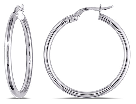 Look elegant and stylish in these gleaming Amour Collection Tube Hoop Earrings. Mounted in lustrous white gold, they feature thin, tube and round hoop earrings. Enhanced with a high polish finish, these hoop earrings secure with clip-in closures. These splendid earrings will make a valuable addition to your versatile jewelry collection. Pair these hoop earrings with any ensemble for a stylish look.