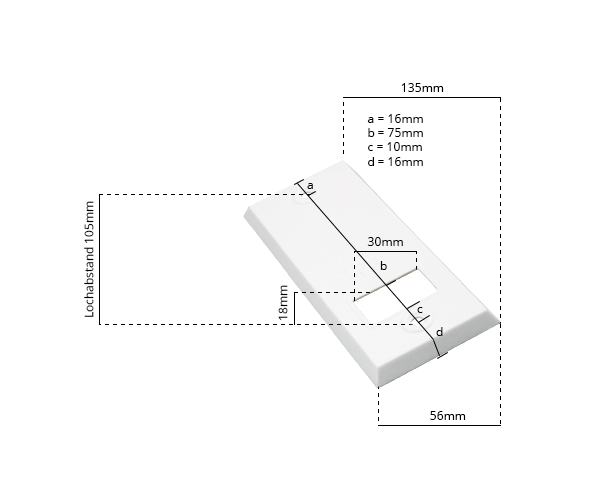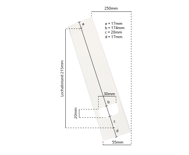 Unsere Abdeckplatte in der Farbe weiß erhalten Sie hier in der Variante mit einem Lochabstand von 105mm - 215mm. Genaue Maße können Sie der Grafik unten entnehmen.