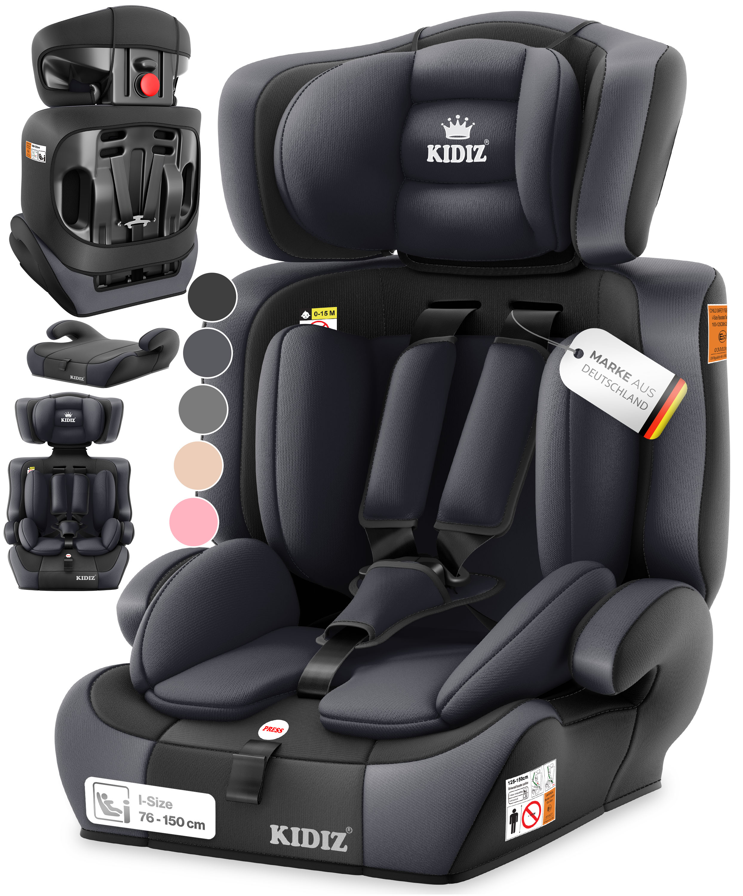 Aus dem Hause Kidiz® bieten wir Ihnen hier einen hochwertigen Autokindersitz für Ihre Liebsten im Alter von 1-12 Jahren an. Der Sitz ist nach ECE R 129/03 (Gruppe 1+2+3, Körpergewicht 9-36 KG – ca. 1-12 Jahre) geprüft und zugelassen.